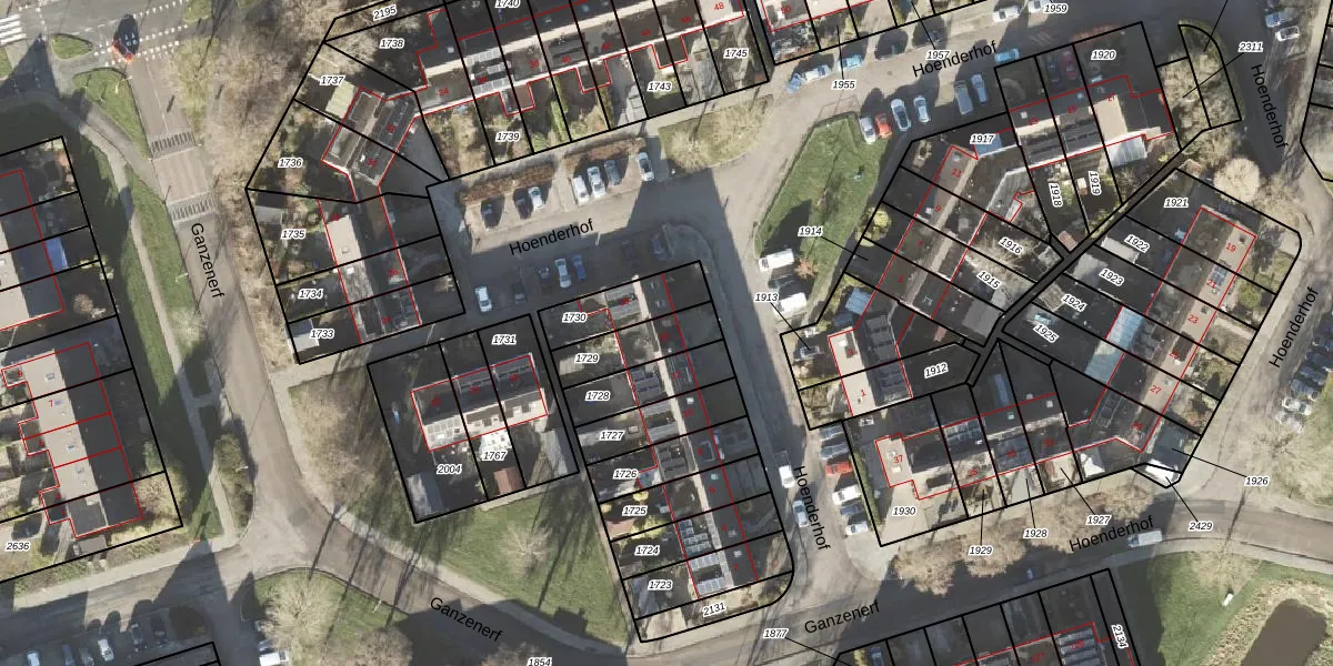 Gebruik de zoekbalk of klik op een perceel voor informatie over de adressen binnen dit perceel.