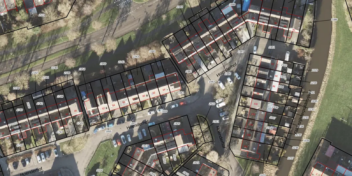 Gebruik de zoekbalk of klik op een perceel voor informatie over de adressen binnen dit perceel.