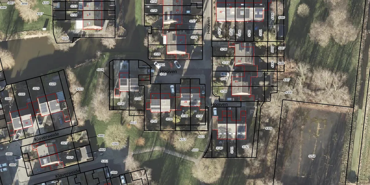 Het perceel waarop Hooiven 29 staat heeft een oppervlakte van 195 m². Dit is een middelgroot perceel. De perceeloppervlakte wordt geregistreerd door het Kadaster. Gedetailleerde informatie over de maten van dit perceel kunt u vinden in het rapport Kadastrale kaart met maatvoering van Hooiven 29.
