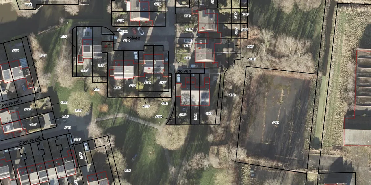 Hooiven 33 is gelegen op kadastraal perceel DZL01B3740. Deze kadastrale aanduiding is uniek en wordt gebruikt door het Kadaster om eigendomsrechten en andere zakelijke rechten vast te leggen. Het perceel maakt onderdeel uit van de kadastrale gemeente Delfzijl.