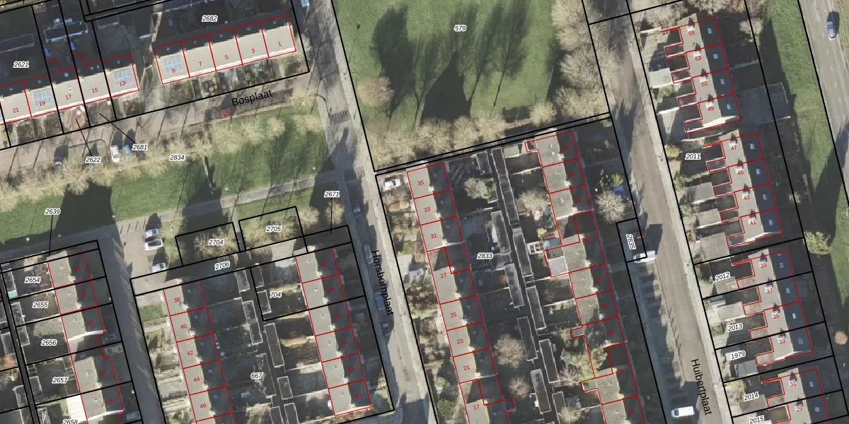 Het perceel waarop Horsbornplaat 33 staat heeft een oppervlakte van 5360 m². Dit is een zeer groot perceel. De perceeloppervlakte wordt geregistreerd door het Kadaster. Gedetailleerde informatie over de maten van dit perceel kunt u vinden in het rapport Kadastrale kaart met maatvoering van Horsbornplaat 33.
