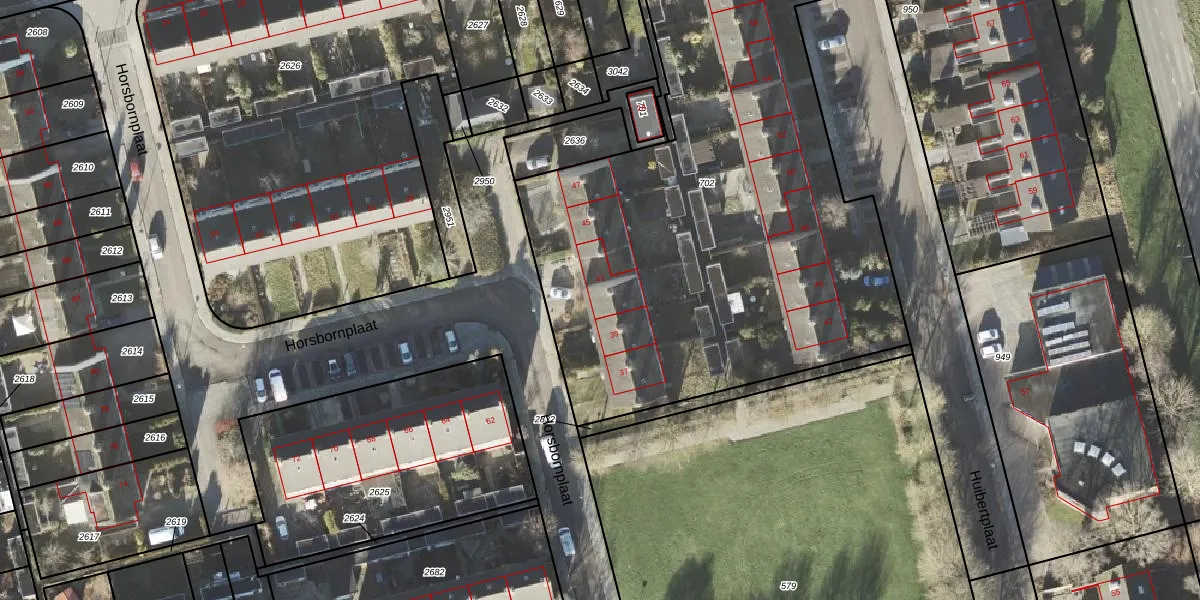 Het perceel waarop Horsbornplaat 41 staat heeft een oppervlakte van 3614 m². Dit is een zeer groot perceel. De perceeloppervlakte wordt geregistreerd door het Kadaster. Gedetailleerde informatie over de maten van dit perceel kunt u vinden in het rapport Kadastrale kaart met maatvoering van Horsbornplaat 41.