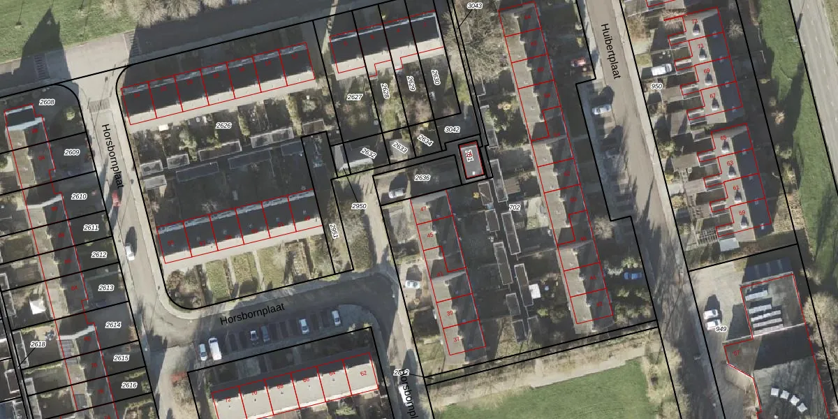 Het perceel waarop Horsbornplaat 47 staat heeft een oppervlakte van 3614 m². Dit is een zeer groot perceel. De perceeloppervlakte wordt geregistreerd door het Kadaster. Gedetailleerde informatie over de maten van dit perceel kunt u vinden in het rapport Kadastrale kaart met maatvoering van Horsbornplaat 47.