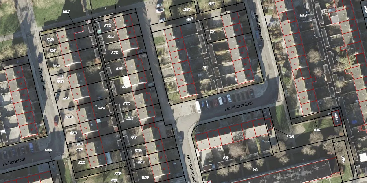 Het perceel waarop Horsbornplaat 48 staat heeft een oppervlakte van 1847 m². Dit is een zeer groot perceel. De perceeloppervlakte wordt geregistreerd door het Kadaster. Gedetailleerde informatie over de maten van dit perceel kunt u vinden in het rapport Kadastrale kaart met maatvoering van Horsbornplaat 48.