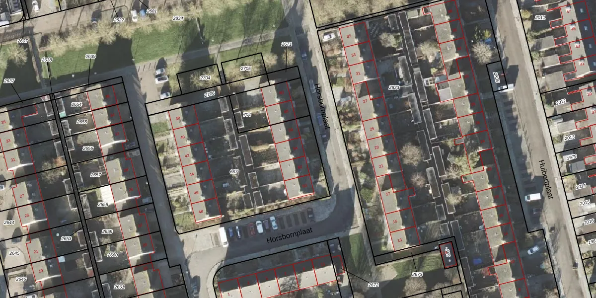 Het perceel waarop Horsbornplaat 54 staat heeft een oppervlakte van 1847 m². Dit is een zeer groot perceel. De perceeloppervlakte wordt geregistreerd door het Kadaster. Gedetailleerde informatie over de maten van dit perceel kunt u vinden in het rapport Kadastrale kaart met maatvoering van Horsbornplaat 54.