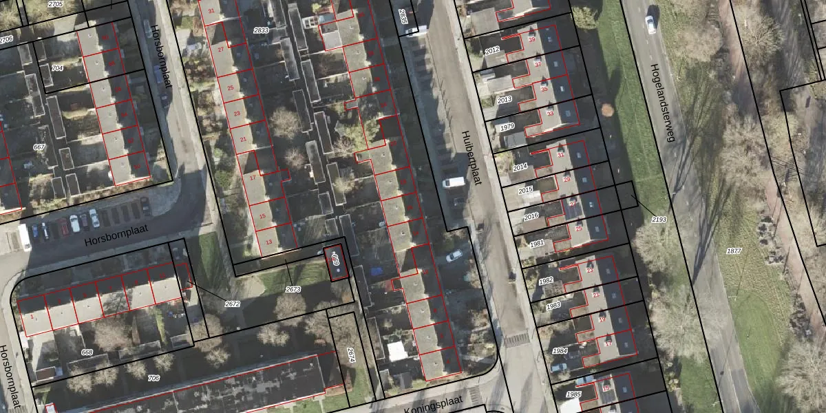 Het perceel waarop Huibertplaat 16 staat heeft een oppervlakte van 5360 m². Dit is een zeer groot perceel. De perceeloppervlakte wordt geregistreerd door het Kadaster. Gedetailleerde informatie over de maten van dit perceel kunt u vinden in het rapport Kadastrale kaart met maatvoering van Huibertplaat 16.