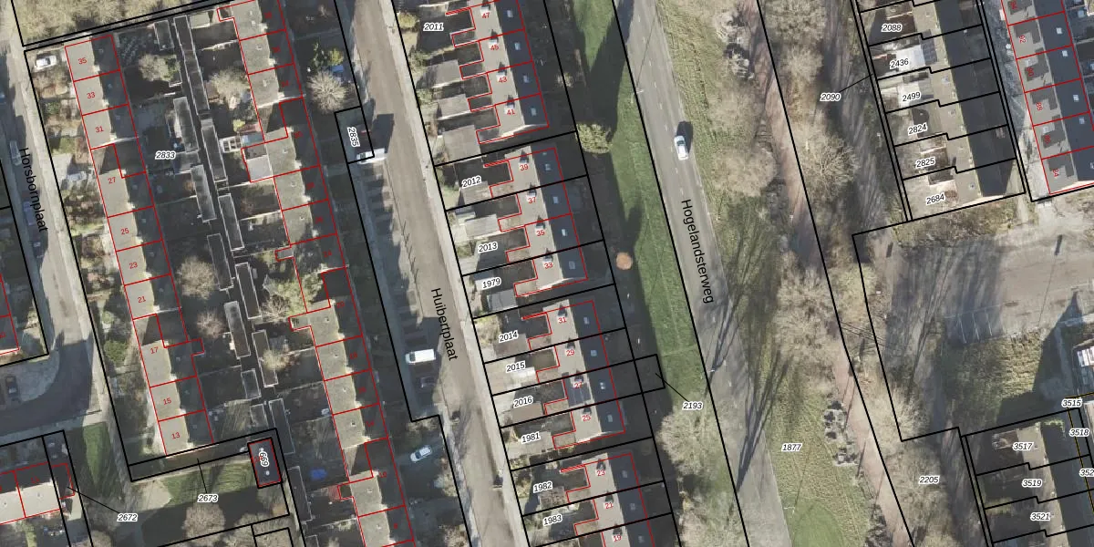 Gebruik de zoekbalk of klik op een perceel voor informatie over de adressen binnen dit perceel.