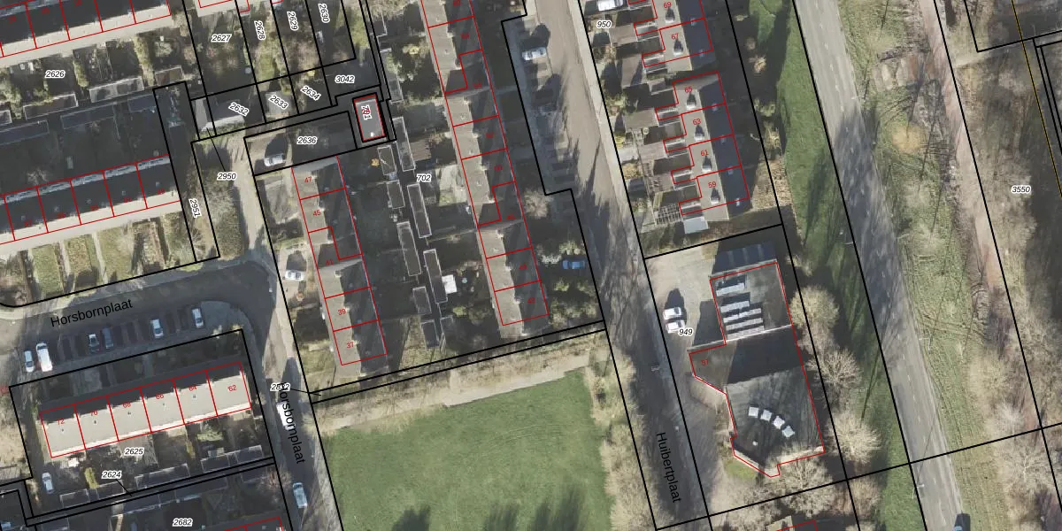 Het perceel waarop Huibertplaat 44 staat heeft een oppervlakte van 3614 m². Dit is een zeer groot perceel. De perceeloppervlakte wordt geregistreerd door het Kadaster. Gedetailleerde informatie over de maten van dit perceel kunt u vinden in het rapport Kadastrale kaart met maatvoering van Huibertplaat 44.