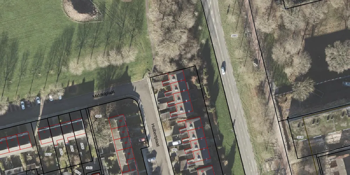 Het perceel waarop Huibertplaat 79 staat heeft een oppervlakte van 2377 m². Dit is een zeer groot perceel. De perceeloppervlakte wordt geregistreerd door het Kadaster. Gedetailleerde informatie over de maten van dit perceel kunt u vinden in het rapport Kadastrale kaart met maatvoering van Huibertplaat 79.