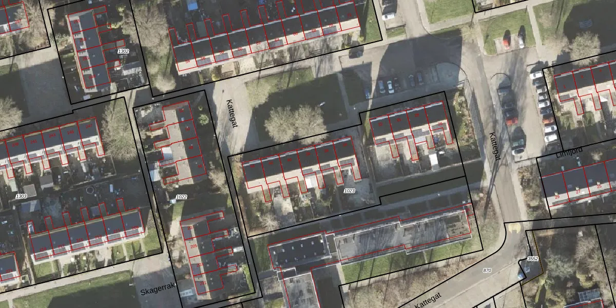 Het perceel waarop Kattegat 38 staat heeft een oppervlakte van 2011 m². Dit is een zeer groot perceel. De perceeloppervlakte wordt geregistreerd door het Kadaster. Gedetailleerde informatie over de maten van dit perceel kunt u vinden in het rapport Kadastrale kaart met maatvoering van Kattegat 38.