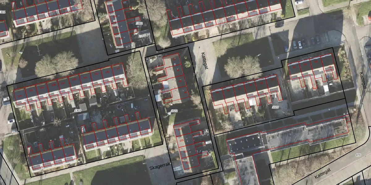 Het perceel waarop Kattegat 46 staat heeft een oppervlakte van 1640 m². Dit is een zeer groot perceel. De perceeloppervlakte wordt geregistreerd door het Kadaster. Gedetailleerde informatie over de maten van dit perceel kunt u vinden in het rapport Kadastrale kaart met maatvoering van Kattegat 46.