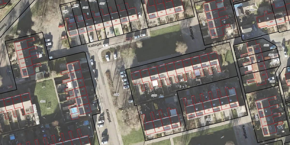 Het perceel waarop Kattegat 51 staat heeft een oppervlakte van 2555 m². Dit is een zeer groot perceel. De perceeloppervlakte wordt geregistreerd door het Kadaster. Gedetailleerde informatie over de maten van dit perceel kunt u vinden in het rapport Kadastrale kaart met maatvoering van Kattegat 51.
