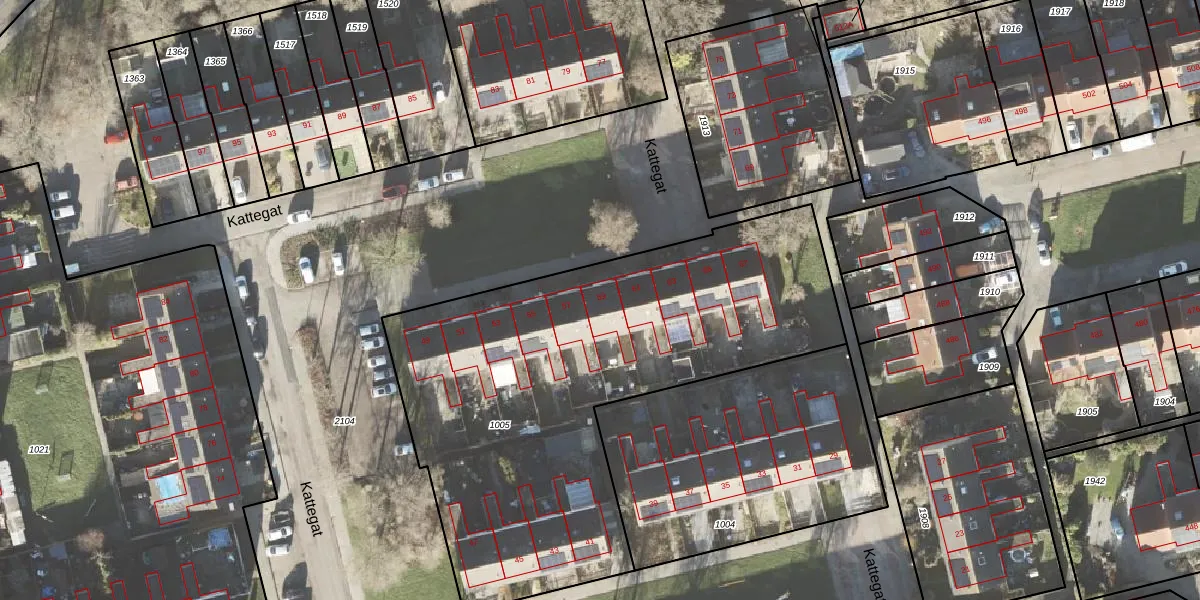 Het perceel waarop Kattegat 59 staat heeft een oppervlakte van 2555 m². Dit is een zeer groot perceel. De perceeloppervlakte wordt geregistreerd door het Kadaster. Gedetailleerde informatie over de maten van dit perceel kunt u vinden in het rapport Kadastrale kaart met maatvoering van Kattegat 59.