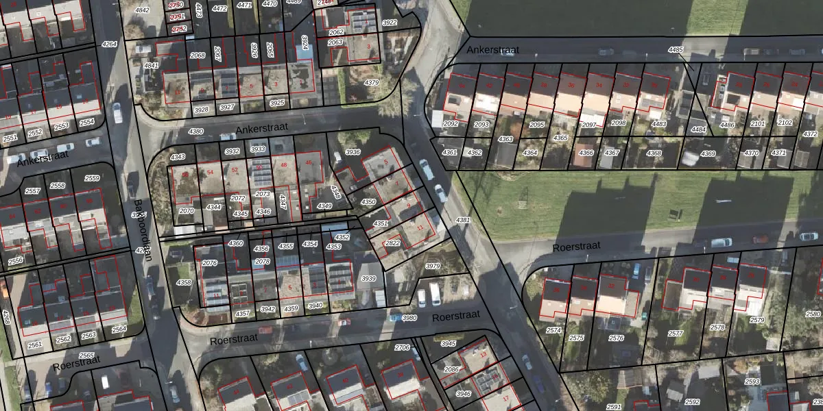 Gebruik de zoekbalk of klik op een perceel voor informatie over de adressen binnen dit perceel.