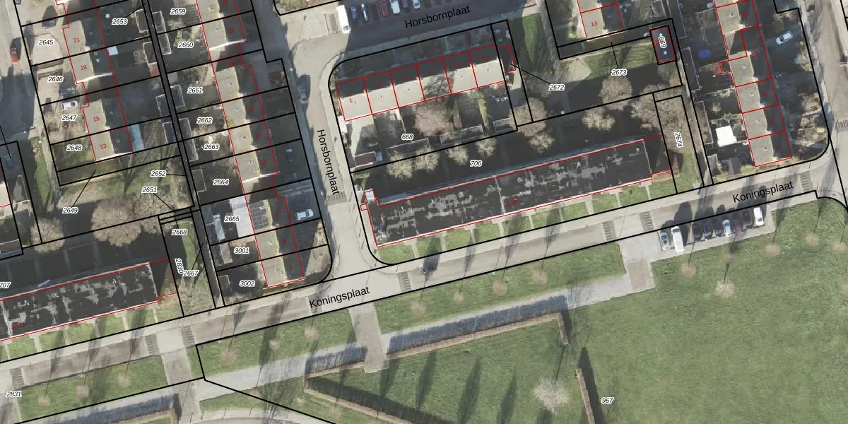 Het perceel waarop Koningsplaat 33 staat heeft een oppervlakte van 1754 m². Dit is een zeer groot perceel. De perceeloppervlakte wordt geregistreerd door het Kadaster. Gedetailleerde informatie over de maten van dit perceel kunt u vinden in het rapport Kadastrale kaart met maatvoering van Koningsplaat 33.