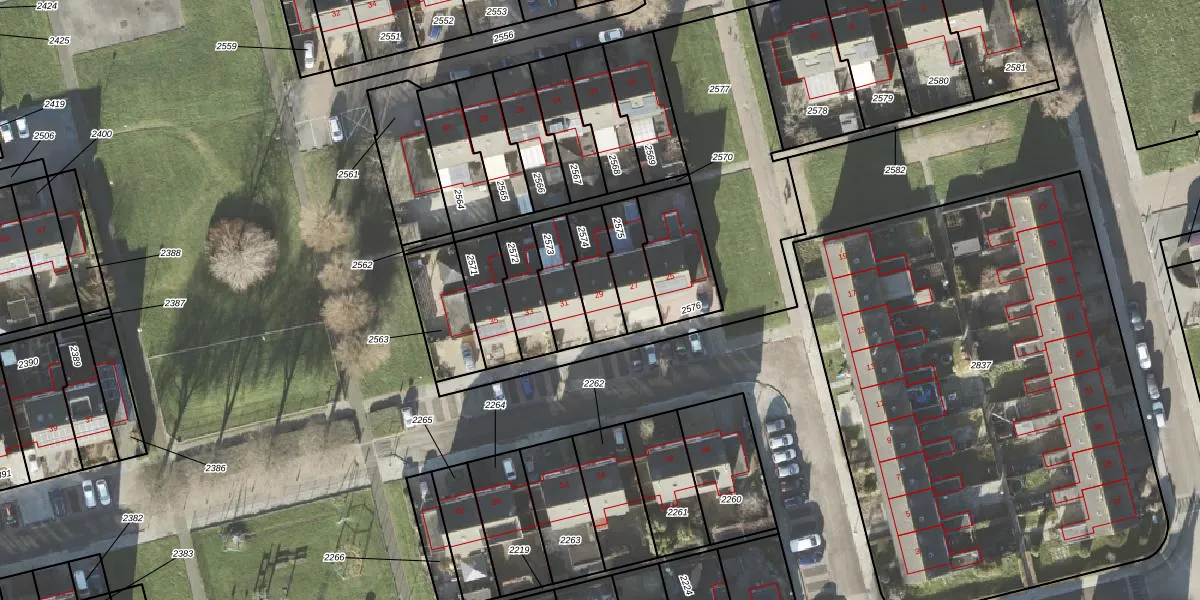 Gebruik de zoekbalk of klik op een perceel voor informatie over de adressen binnen dit perceel.