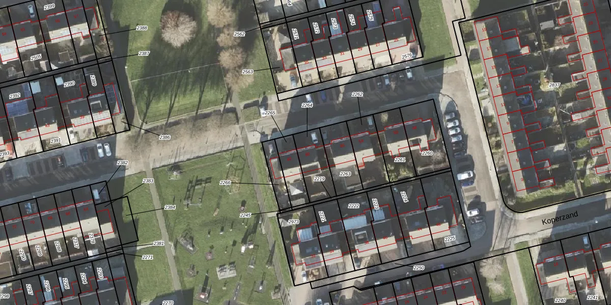 Het perceel waarop Koperzand 60 staat heeft een oppervlakte van 208 m². Dit is een middelgroot perceel. De perceeloppervlakte wordt geregistreerd door het Kadaster. Gedetailleerde informatie over de maten van dit perceel kunt u vinden in het rapport Kadastrale kaart met maatvoering van Koperzand 60.