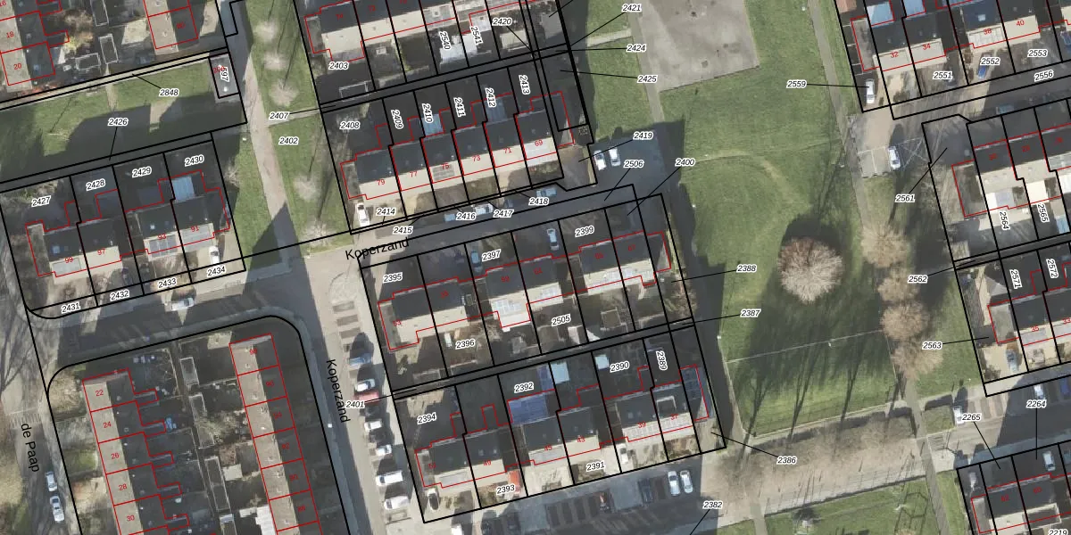 Gebruik de zoekbalk of klik op een perceel voor informatie over de adressen binnen dit perceel.