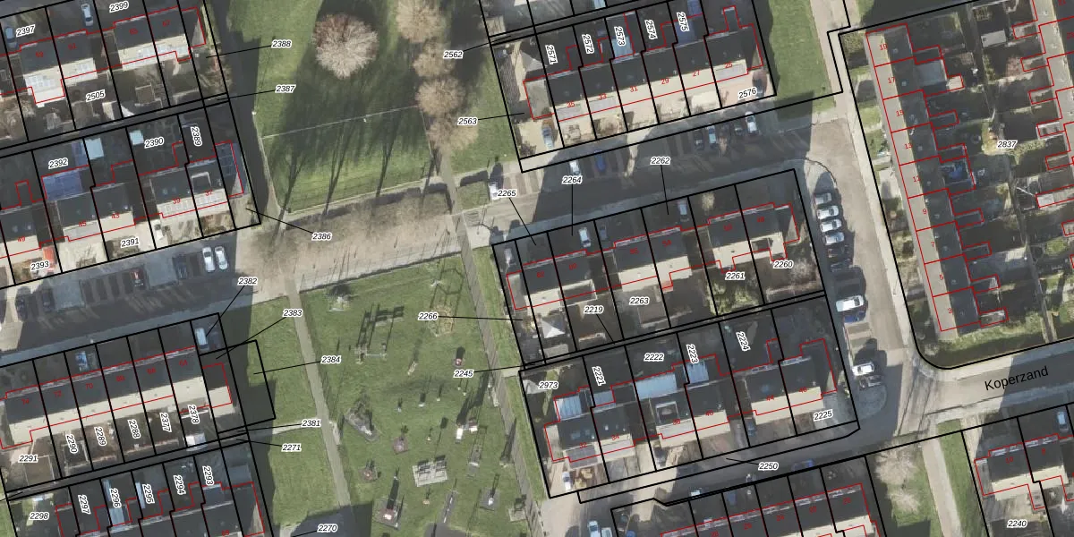 Het perceel waarop Koperzand 62 staat heeft een oppervlakte van 142 m². Dit is een middelgroot perceel. De perceeloppervlakte wordt geregistreerd door het Kadaster. Gedetailleerde informatie over de maten van dit perceel kunt u vinden in het rapport Kadastrale kaart met maatvoering van Koperzand 62.