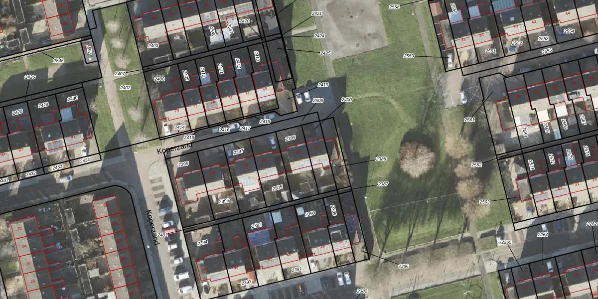 Het perceel waarop Koperzand 65 staat heeft een oppervlakte van 213 m². Dit is een middelgroot perceel. De perceeloppervlakte wordt geregistreerd door het Kadaster. Gedetailleerde informatie over de maten van dit perceel kunt u vinden in het rapport Kadastrale kaart met maatvoering van Koperzand 65.