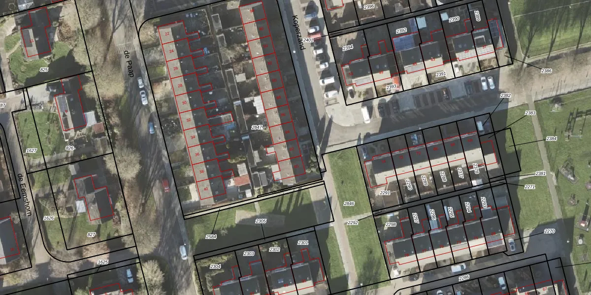 Het perceel waarop Koperzand 82 staat heeft een oppervlakte van 3243 m². Dit is een zeer groot perceel. De perceeloppervlakte wordt geregistreerd door het Kadaster. Gedetailleerde informatie over de maten van dit perceel kunt u vinden in het rapport Kadastrale kaart met maatvoering van Koperzand 82.