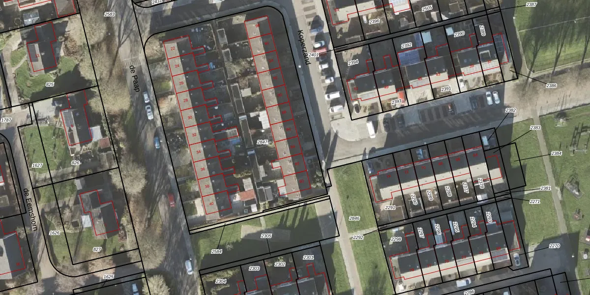 Het perceel waarop Koperzand 84 staat heeft een oppervlakte van 3243 m². Dit is een zeer groot perceel. De perceeloppervlakte wordt geregistreerd door het Kadaster. Gedetailleerde informatie over de maten van dit perceel kunt u vinden in het rapport Kadastrale kaart met maatvoering van Koperzand 84.