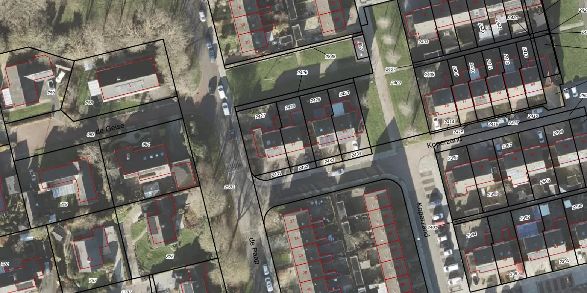 Gebruik de zoekbalk of klik op een perceel voor informatie over de adressen binnen dit perceel.