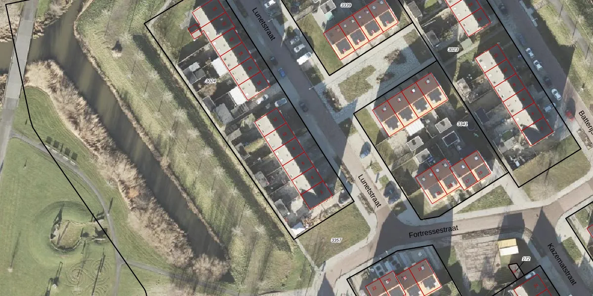 Het perceel waarop Lunetstraat 8 staat heeft een oppervlakte van 2275 m². Dit is een zeer groot perceel. De perceeloppervlakte wordt geregistreerd door het Kadaster. Gedetailleerde informatie over de maten van dit perceel kunt u vinden in het rapport Kadastrale kaart met maatvoering van Lunetstraat 8.