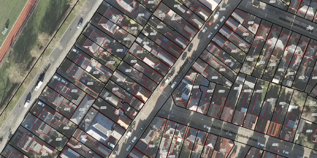 Het perceel waarop Marcus Buschstraat 53 staat heeft een oppervlakte van 180 m². Dit is een middelgroot perceel. De perceeloppervlakte wordt geregistreerd door het Kadaster. Gedetailleerde informatie over de maten van dit perceel kunt u vinden in het rapport Kadastrale kaart met maatvoering van Marcus Buschstraat 53.