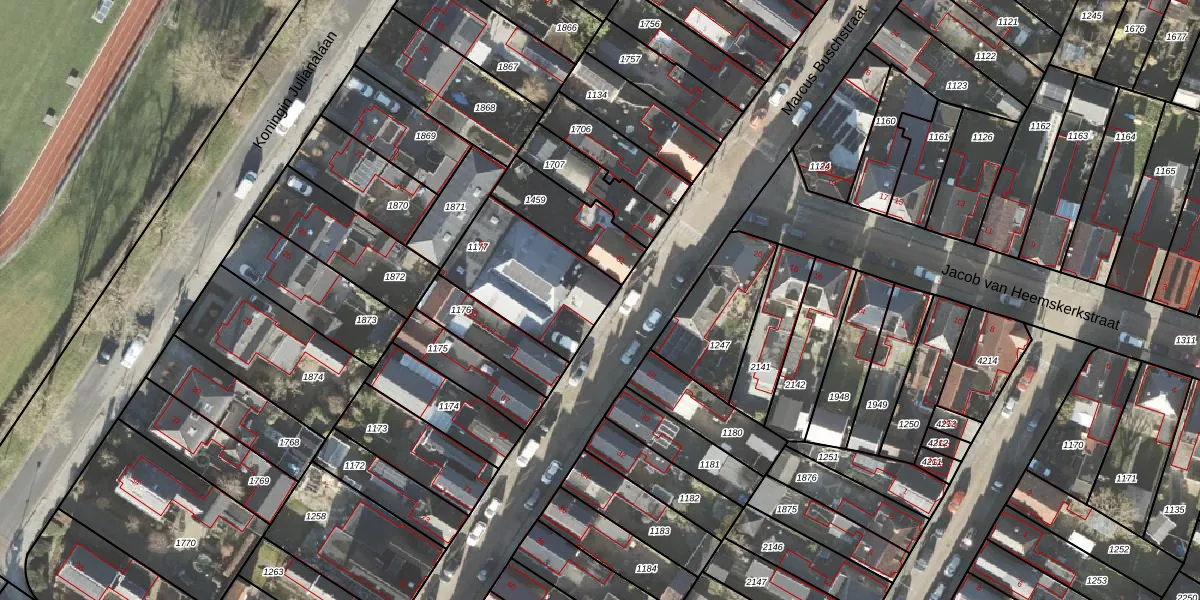 Het perceel waarop Marcus Buschstraat 63 staat heeft een oppervlakte van 415 m². Dit is een groot perceel. De perceeloppervlakte wordt geregistreerd door het Kadaster. Gedetailleerde informatie over de maten van dit perceel kunt u vinden in het rapport Kadastrale kaart met maatvoering van Marcus Buschstraat 63.