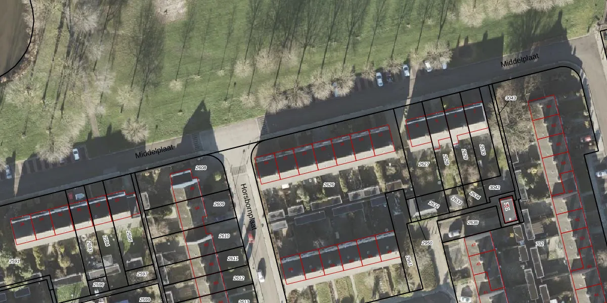 Het perceel waarop Middelplaat 20 staat heeft een oppervlakte van 2664 m². Dit is een zeer groot perceel. De perceeloppervlakte wordt geregistreerd door het Kadaster. Gedetailleerde informatie over de maten van dit perceel kunt u vinden in het rapport Kadastrale kaart met maatvoering van Middelplaat 20.