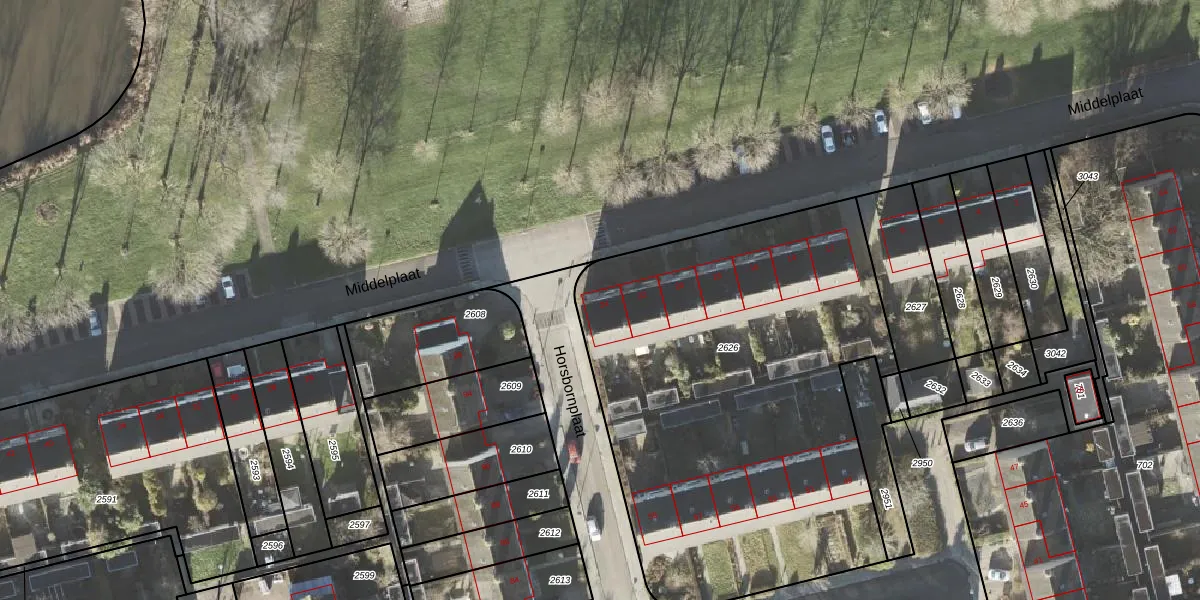Het perceel waarop Middelplaat 24 staat heeft een oppervlakte van 2664 m². Dit is een zeer groot perceel. De perceeloppervlakte wordt geregistreerd door het Kadaster. Gedetailleerde informatie over de maten van dit perceel kunt u vinden in het rapport Kadastrale kaart met maatvoering van Middelplaat 24.