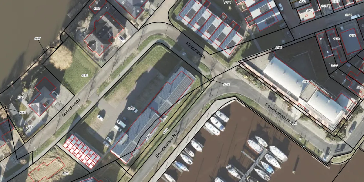 Midscheeps 103-e is gelegen op kadastraal perceel DZL01D4386. Deze kadastrale aanduiding is uniek en wordt gebruikt door het Kadaster om eigendomsrechten en andere zakelijke rechten vast te leggen. Het perceel maakt onderdeel uit van de kadastrale gemeente Delfzijl.