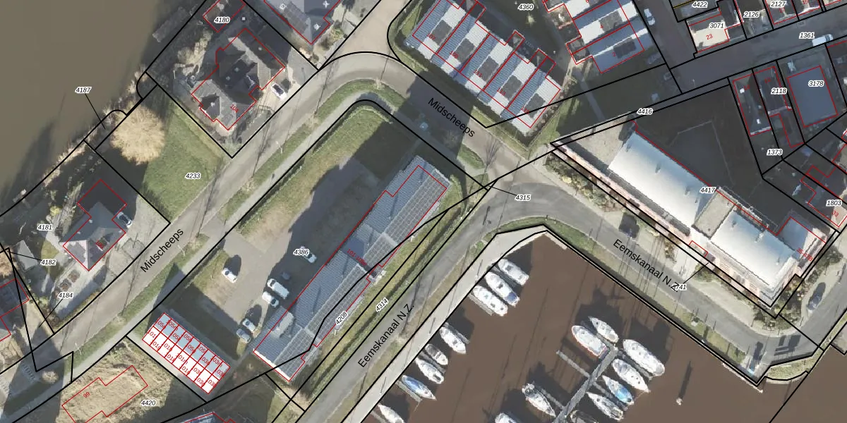 Het perceel waarop Midscheeps 105-e staat heeft een oppervlakte van 2434 m². Dit is een zeer groot perceel. De perceeloppervlakte wordt geregistreerd door het Kadaster. Gedetailleerde informatie over de maten van dit perceel kunt u vinden in het rapport Kadastrale kaart met maatvoering van Midscheeps 105-e.