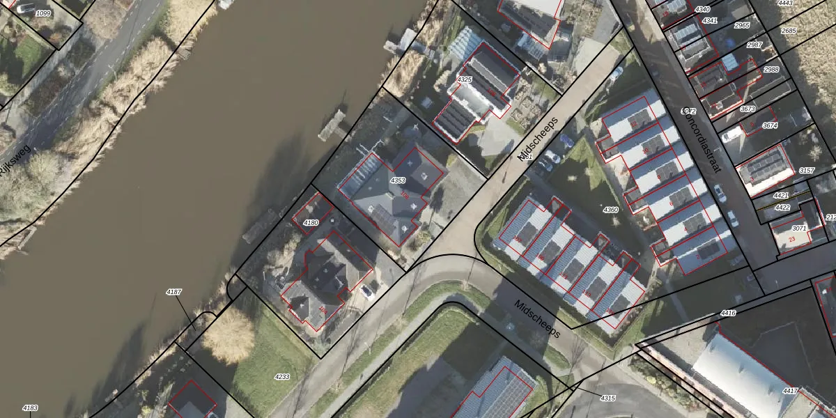 Het perceel waarop Midscheeps 106 staat heeft een oppervlakte van 945 m². Dit is een groot perceel. De perceeloppervlakte wordt geregistreerd door het Kadaster. Gedetailleerde informatie over de maten van dit perceel kunt u vinden in het rapport Kadastrale kaart met maatvoering van Midscheeps 106.