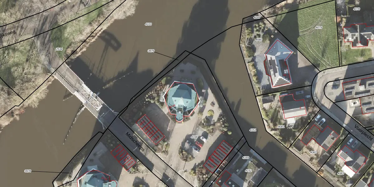 Het perceel waarop Midscheeps 38 staat heeft een oppervlakte van 2640 m². Dit is een zeer groot perceel. De perceeloppervlakte wordt geregistreerd door het Kadaster. Gedetailleerde informatie over de maten van dit perceel kunt u vinden in het rapport Kadastrale kaart met maatvoering van Midscheeps 38.
