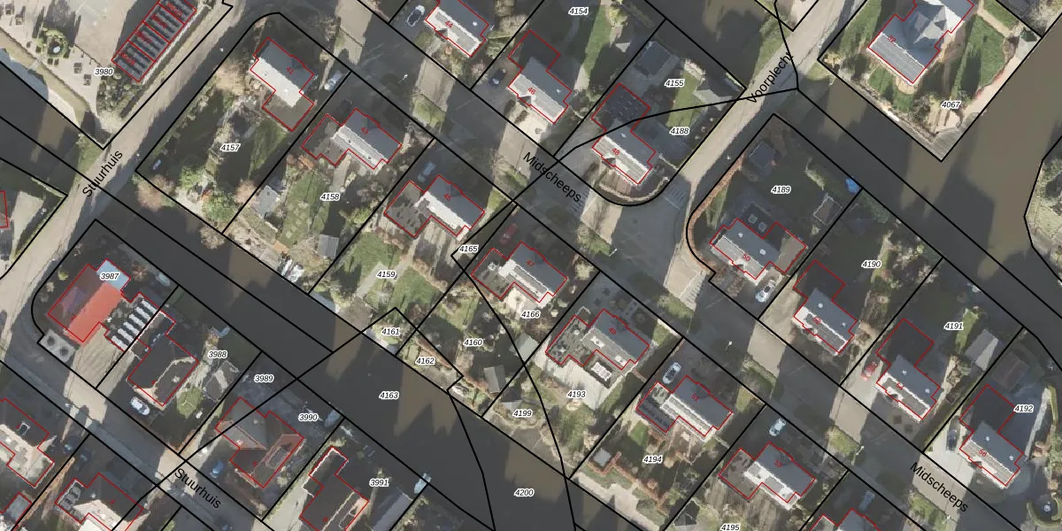Gebruik de zoekbalk of klik op een perceel voor informatie over de adressen binnen dit perceel.