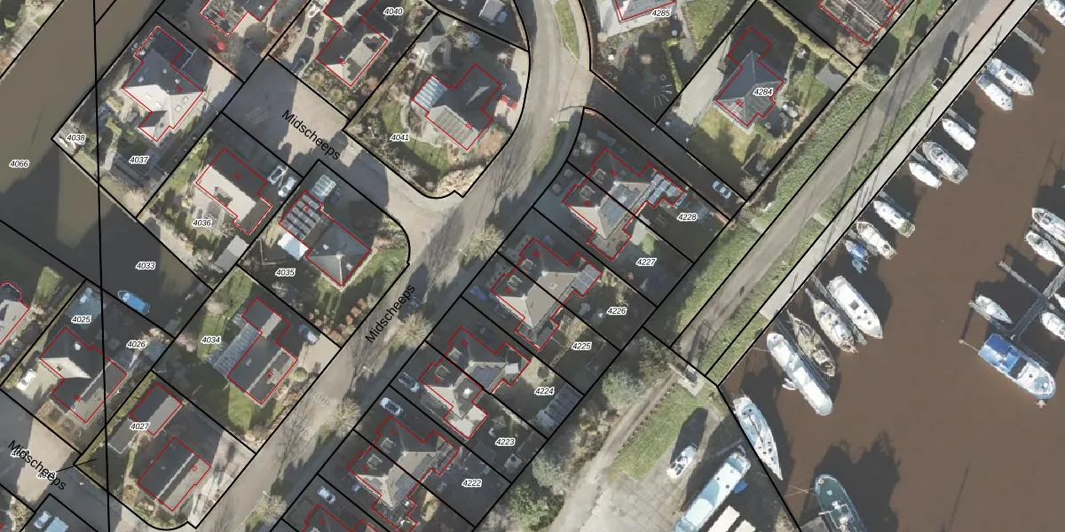 Het perceel waarop Midscheeps 85 staat heeft een oppervlakte van 324 m². Dit is een groot perceel. De perceeloppervlakte wordt geregistreerd door het Kadaster. Gedetailleerde informatie over de maten van dit perceel kunt u vinden in het rapport Kadastrale kaart met maatvoering van Midscheeps 85.