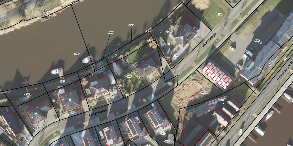 Midscheeps 98 is gelegen op kadastraal perceel DZL01D4185. Deze kadastrale aanduiding is uniek en wordt gebruikt door het Kadaster om eigendomsrechten en andere zakelijke rechten vast te leggen. Het perceel maakt onderdeel uit van de kadastrale gemeente Delfzijl.