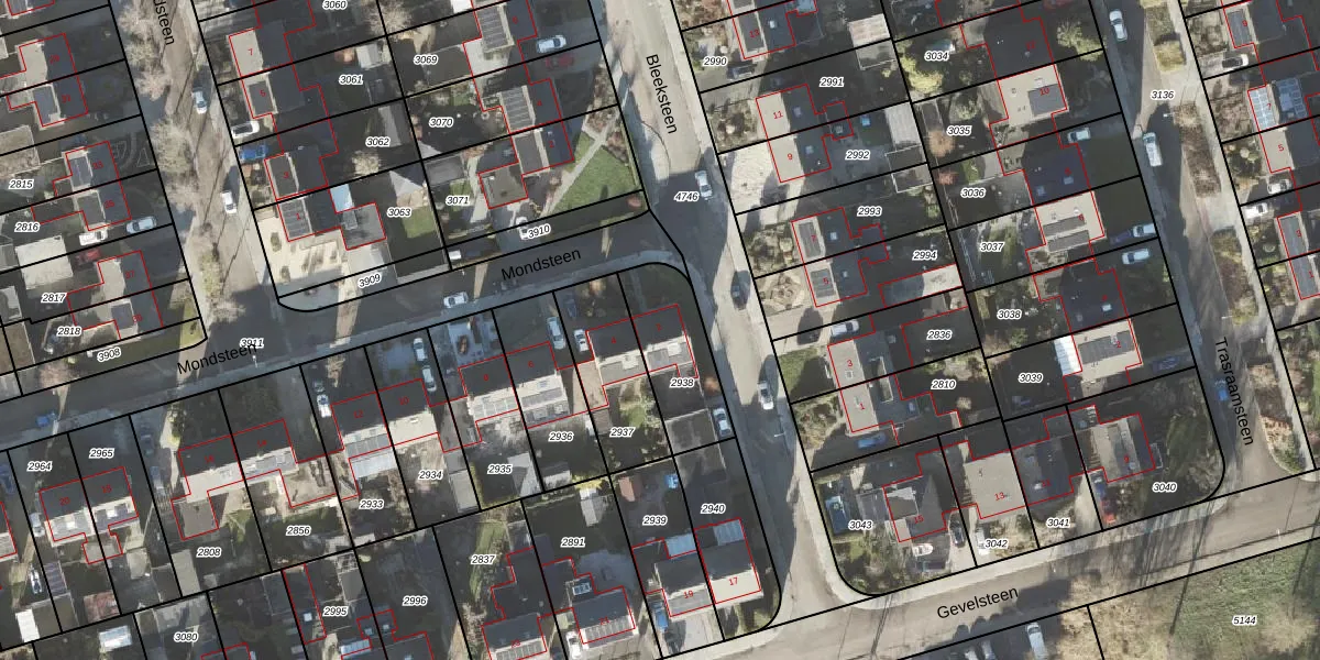 Gebruik de zoekbalk of klik op een perceel voor informatie over de adressen binnen dit perceel.