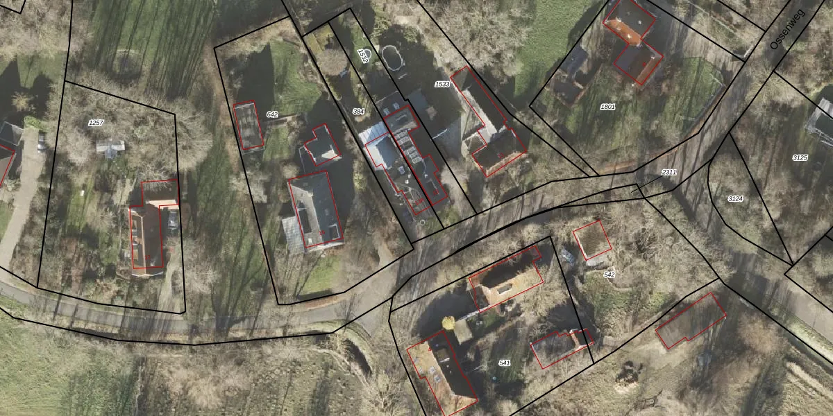 Het perceel waarop Ossenweg 13-A staat heeft een oppervlakte van 470 m². Dit is een groot perceel. De perceeloppervlakte wordt geregistreerd door het Kadaster. Gedetailleerde informatie over de maten van dit perceel kunt u vinden in het rapport Kadastrale kaart met maatvoering van Ossenweg 13-A.