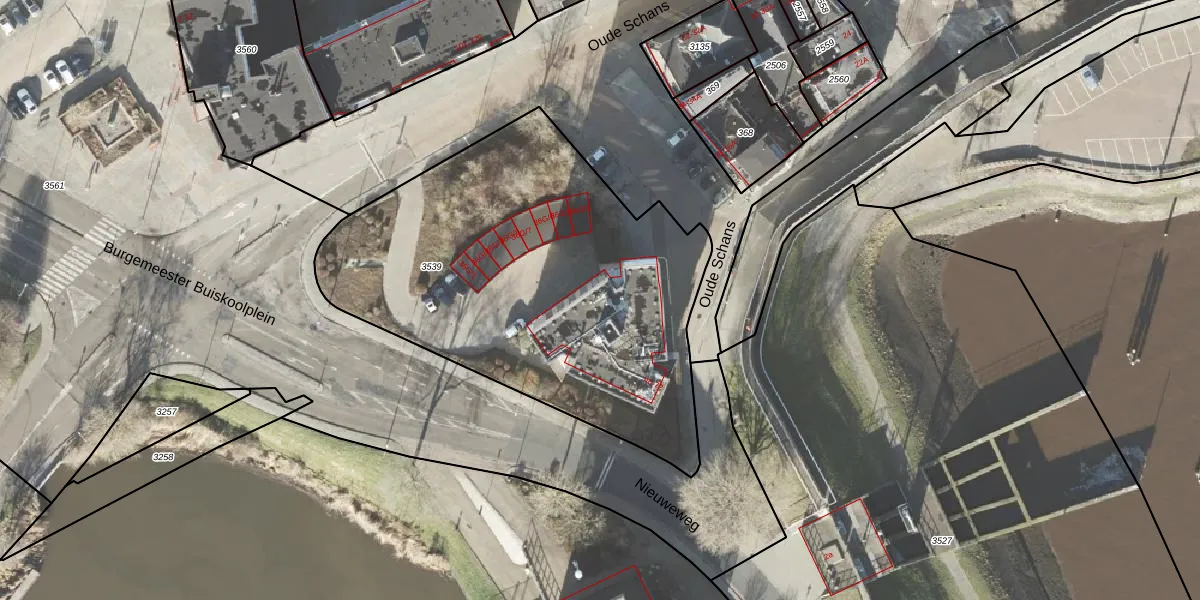 Het perceel waarop Oude Schans 64 staat heeft een oppervlakte van 2203 m². Dit is een zeer groot perceel. De perceeloppervlakte wordt geregistreerd door het Kadaster. Gedetailleerde informatie over de maten van dit perceel kunt u vinden in het rapport Kadastrale kaart met maatvoering van Oude Schans 64.