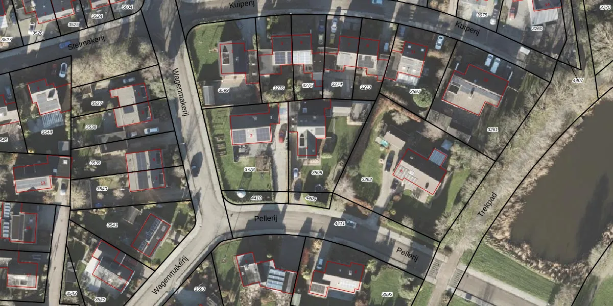 Het perceel waarop Pellerij 4 staat heeft een oppervlakte van 656 m². Dit is een groot perceel. De perceeloppervlakte wordt geregistreerd door het Kadaster. Gedetailleerde informatie over de maten van dit perceel kunt u vinden in het rapport Kadastrale kaart met maatvoering van Pellerij 4.