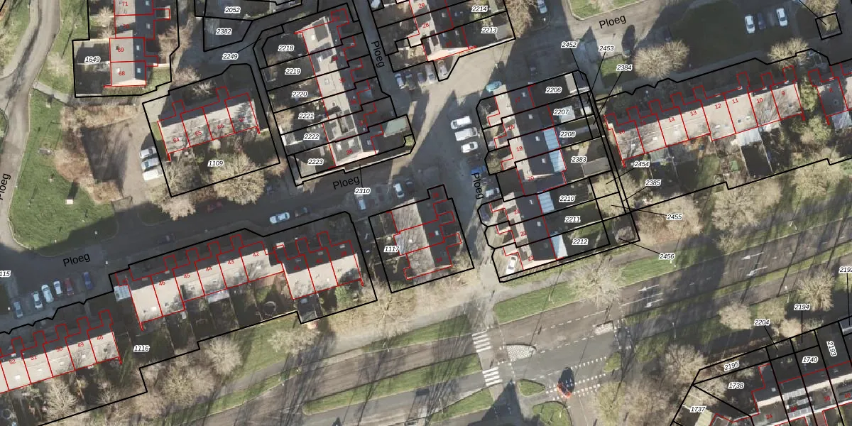 Het perceel waarop Ploeg 26 staat heeft een oppervlakte van 382 m². Dit is een groot perceel. De perceeloppervlakte wordt geregistreerd door het Kadaster. Gedetailleerde informatie over de maten van dit perceel kunt u vinden in het rapport Kadastrale kaart met maatvoering van Ploeg 26.