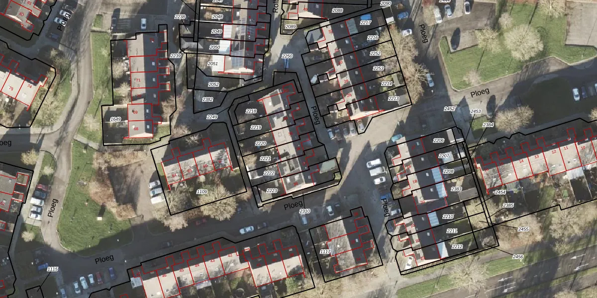 Gebruik de zoekbalk of klik op een perceel voor informatie over de adressen binnen dit perceel.
