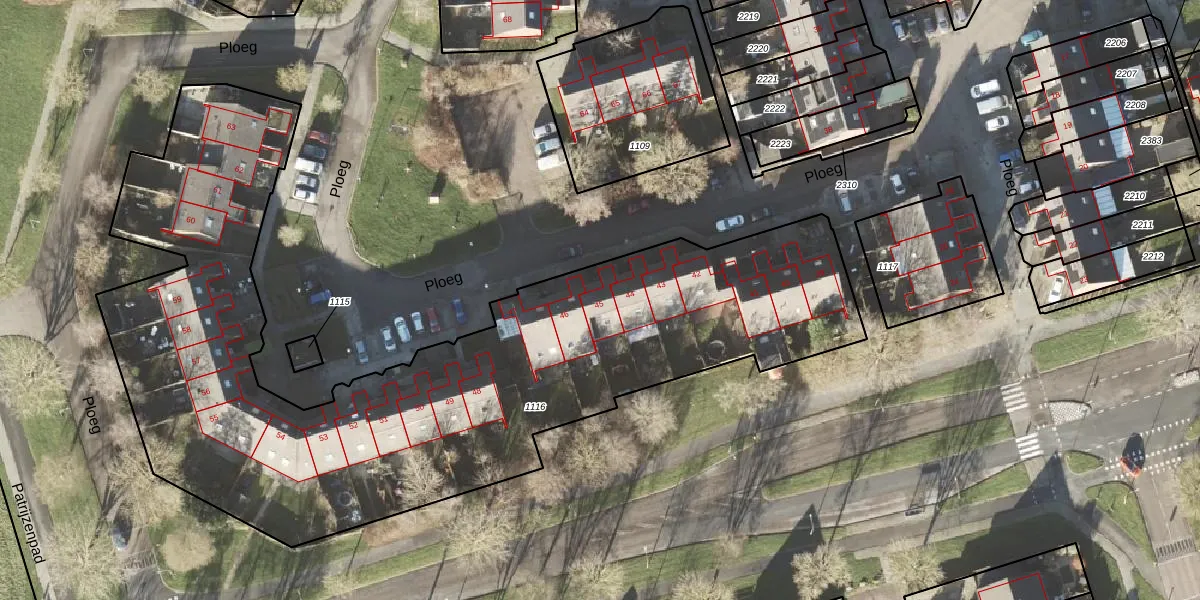 Het perceel waarop Ploeg 45 staat heeft een oppervlakte van 3850 m². Dit is een zeer groot perceel. De perceeloppervlakte wordt geregistreerd door het Kadaster. Gedetailleerde informatie over de maten van dit perceel kunt u vinden in het rapport Kadastrale kaart met maatvoering van Ploeg 45.