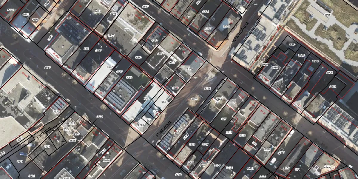 Gebruik de zoekbalk of klik op een perceel voor informatie over de adressen binnen dit perceel.