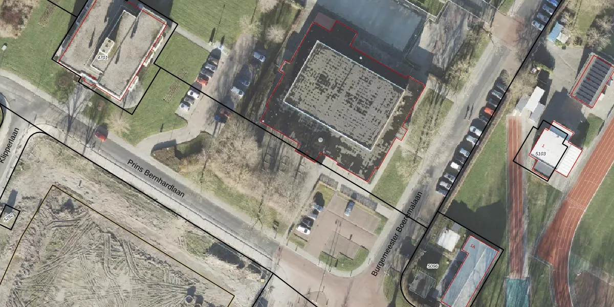Het perceel waarop Prins Bernhardlaan 1 staat heeft een oppervlakte van 6,3 ha. Dit is een zeer groot perceel. De perceeloppervlakte wordt geregistreerd door het Kadaster. Gedetailleerde informatie over de maten van dit perceel kunt u vinden in het rapport Kadastrale kaart met maatvoering van Prins Bernhardlaan 1.