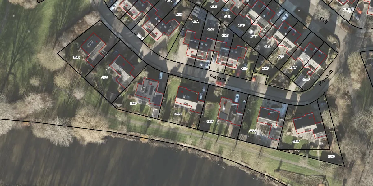 Gebruik de zoekbalk of klik op een perceel voor informatie over de adressen binnen dit perceel.