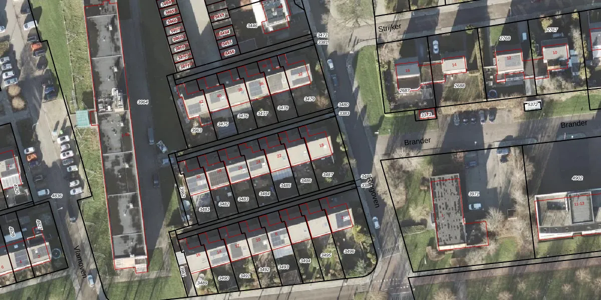 Gebruik de zoekbalk of klik op een perceel voor informatie over de adressen binnen dit perceel.